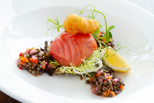 🥗 1. Warm lentil, smoked salmon and arugula salad