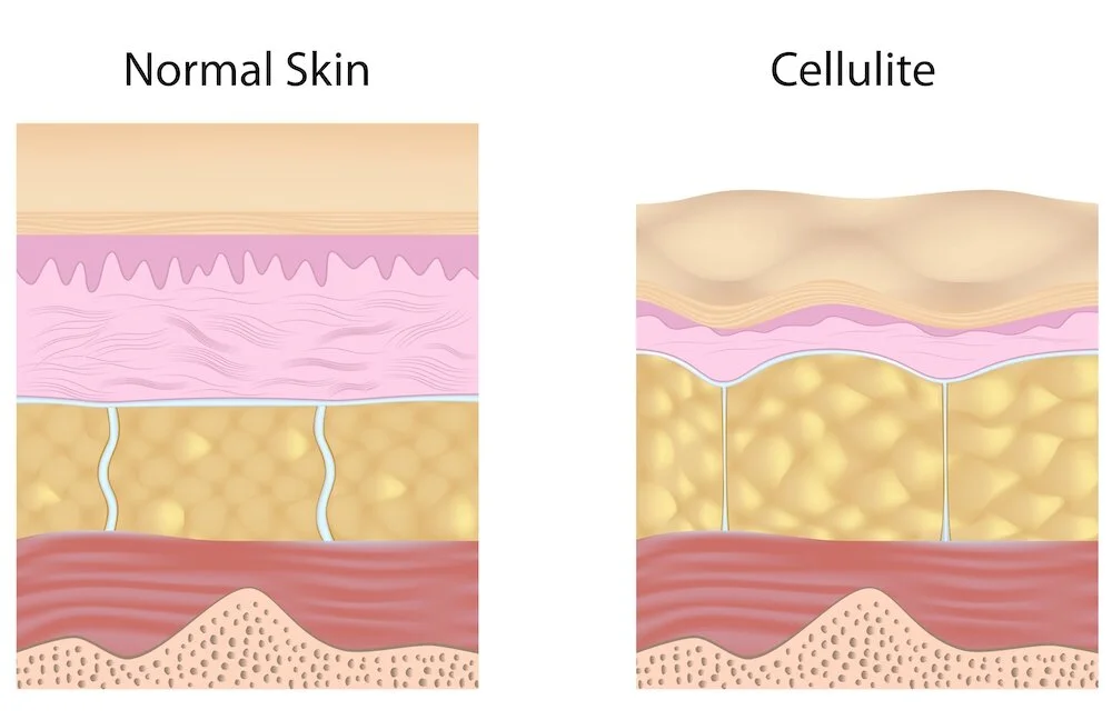 When fat cells swell, they protrude from the skin’s surface, unfortunately creating unsightly bumps and hollows along the way. Hence that dimpled, orange-peel appearance…